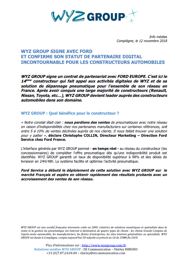 The full press release in PDF format: 20181112_WYZ GROUP_FORD EUROPE (French)